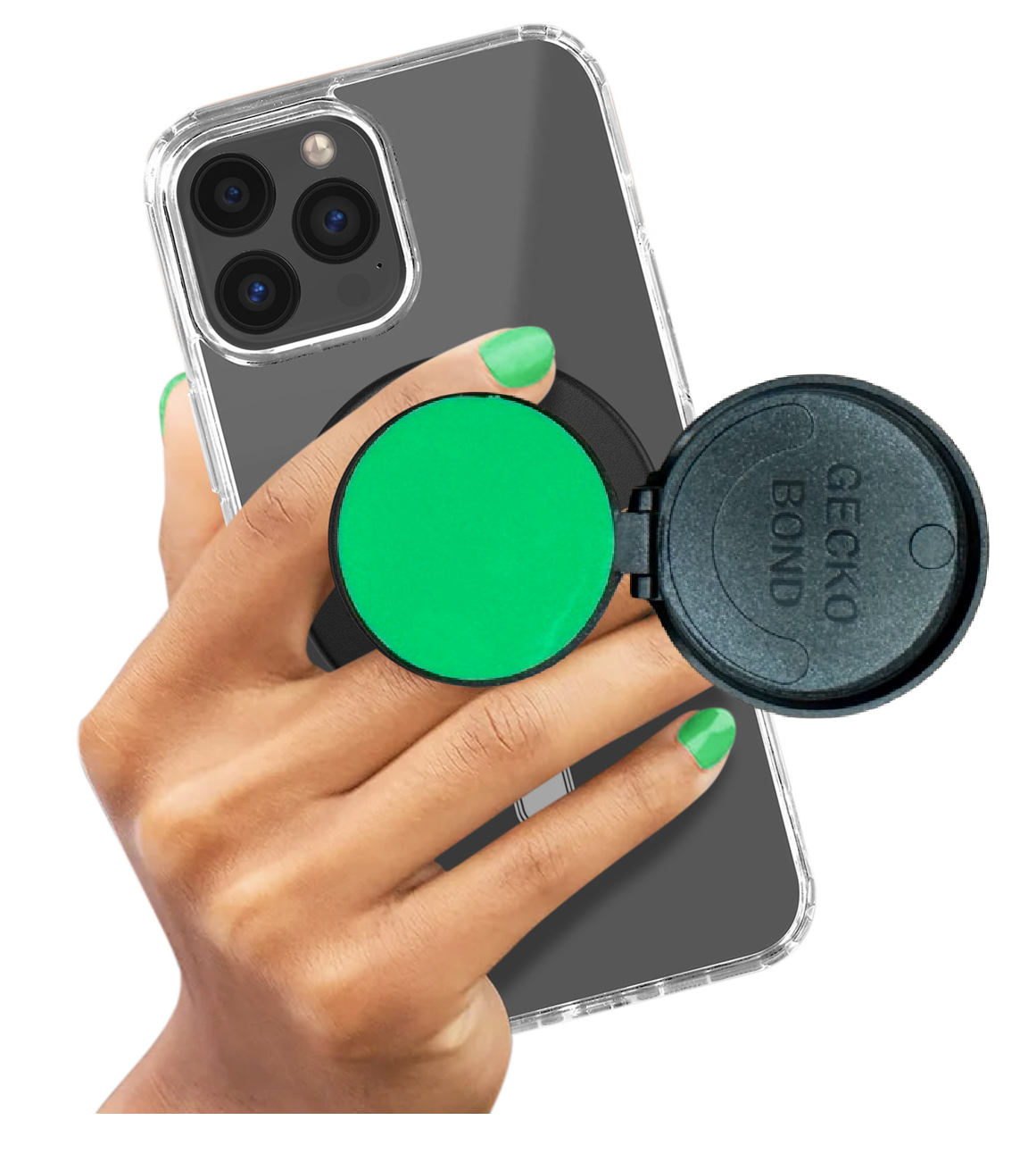 Gecko Bond MagSafe PopUpGrip Mount use a washable, reusable, damage-free, super-strong adhesive to allow your phone to stick to ANY flat surface for the best selfies and videos or in your vehicle for hands-free driving. Comes with MagSafe pop out phone grip and magnetic ring attachment to make any phone case MagSafe.